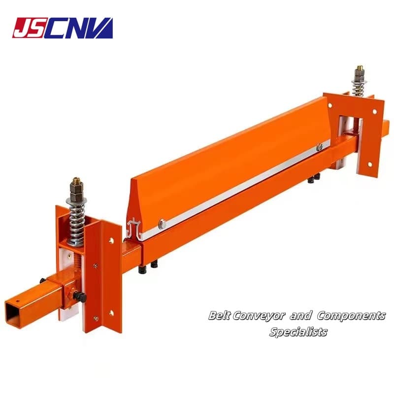Еднолиниско средство за чистење е за чистење на повратниот ремен. Главно се користи пред макарата на задниот свиок и пред тешкиот вертикален уред за затегнување на транспортерот на лентата. Особено може да се користи за чистење на празниот дел од двонасочниот ремен за возење. Има карактеристики на отпорност на киселина и алкали, отпорен на пламен и антистатик, висока отпорност на абење и не го оштетува ременот. Сечилото е направено од полиуретан со висока цврстина, дизајнот во облик на V обезбедува чистота на ременот, а автоматскиот дизајн на гравитација обезбедува автоматско компензација кога сечилото се истроши.